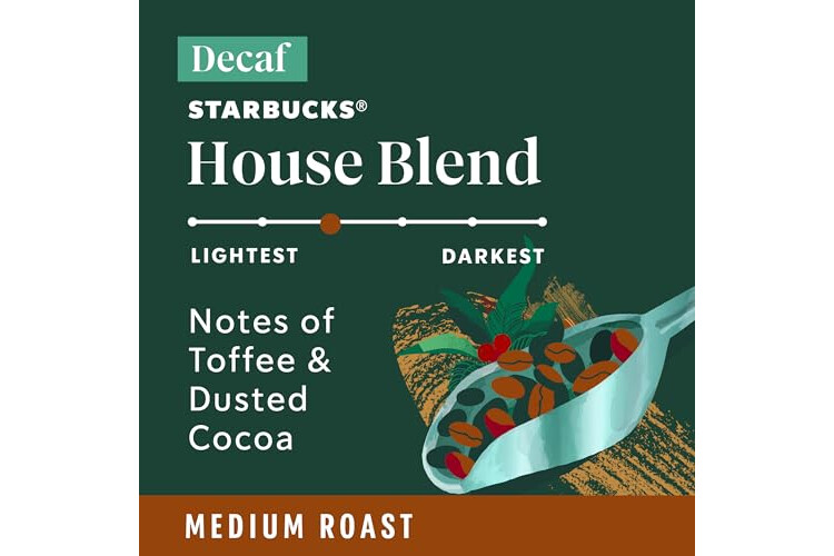 BALANCED: Starbucks Decaf House Blend is a well-rounded and medium-bodied blend of Latin American coffees with notes of toffee and dusted cocoa—making this decaffeinated coffee approachable, smooth and oh so delicious
