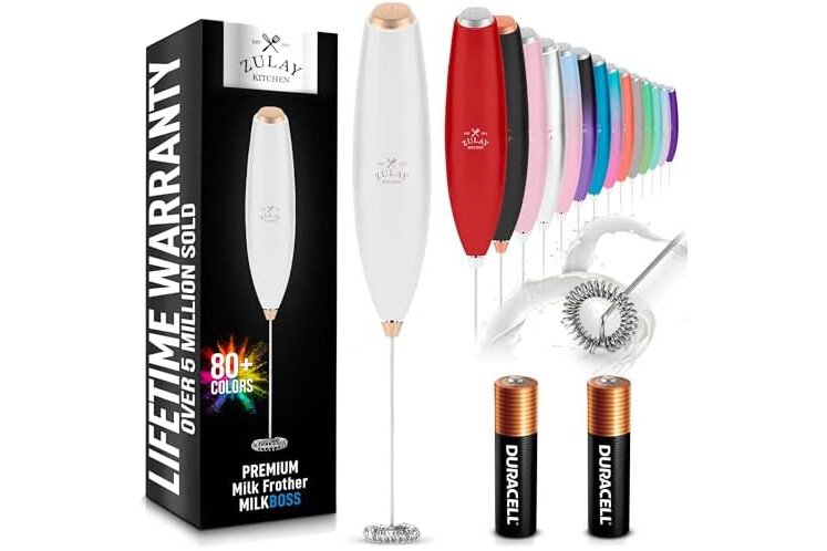 Zulay Kitchen Milk Frother Handheld Electric Whisk with AA Duracell Batteries – Durable Drink Mixer for Coffee, Lattes, Cappuccinos & More - White Rose Gold
