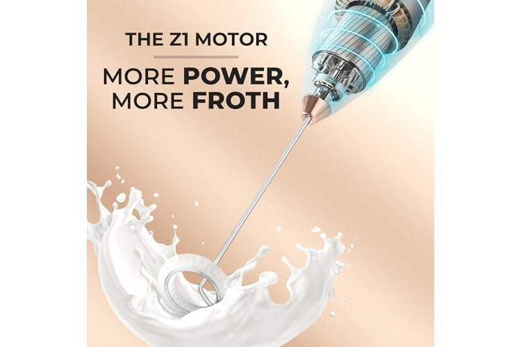 • CREAMY VELVETY FROTH IN SECONDS: Making coffee-shop-style recipes at home is as simple as it can be with this milk frother. The 13,000 RPM motor and 25 spiral rings on the whisk let you whip up rich foam in no time. Level up your everyday warm or cold coffee, latte, cappuccino, hot chocolate, matcha, or powdered drinks with this frother.