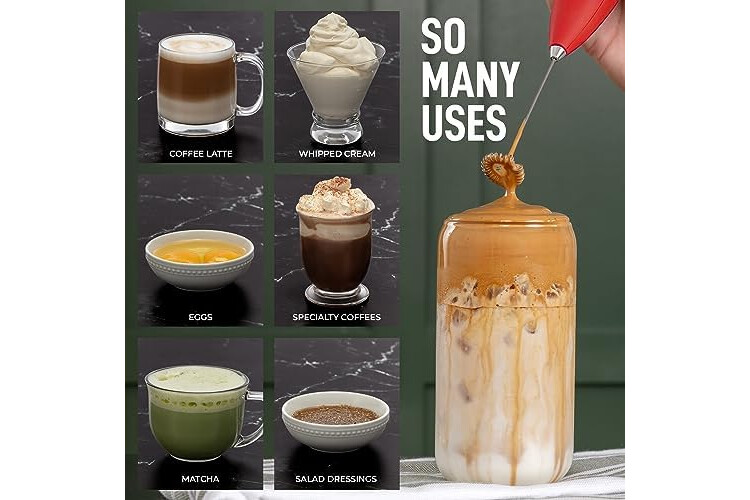 Matcha Whisking, Coffee & More: Works better than a manual matcha whisk for making matcha tea and works far better than fork or whisk for coffee. It works very well to mix nutritious protein powder drinks with no extra container, blender or bottle shaker to wash. Use our mini mixer for your whisking and mixing needs: Give healthy shakes and smoothies a kick by adding powder or egg nog flavor and mixing.