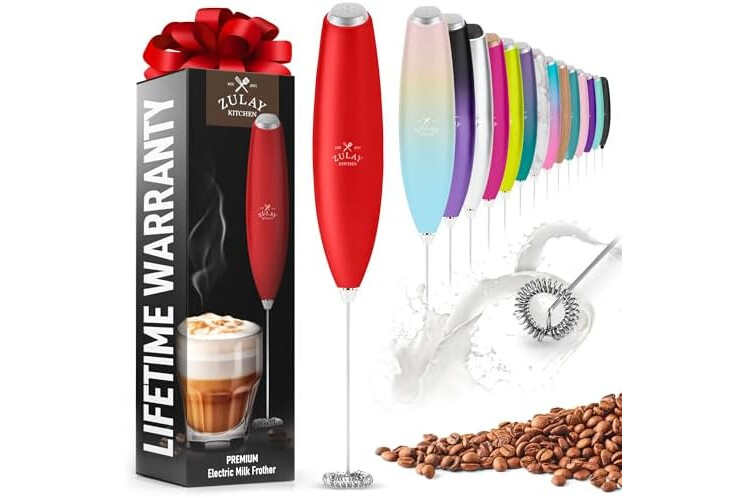 Zulay Powerful Milk Frother for Coffee with Powerful Motor - Handheld Frother Electric Whisk, Milk Foamer, Mini Mixer & Coffee Blender Frother for Frappe, Latte, Matcha, No Stand - Red