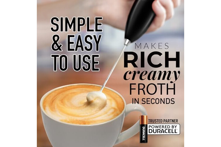 LIFETIME FROTHING ACCESSORY: This drink mixer, with rust-resistant stainless steel and a sleek nylon body, is built to be your coffee accessory for years. Powered by 2 included Duracell batteries, this coffee stirrer works on all types of milk, such as oat, soy, almond, and other dairy items like cream.