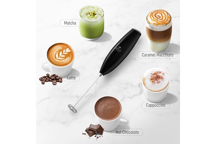 CREAMY VELVETY FROTH IN SECONDS: Making coffee-shop-style recipes at home is as simple as it can be with this milk frother. The 13,000 RPM motor and 25 spiral rings on the whisk let you whip up rich foam in no time. Level up your everyday warm or cold coffee, latte, cappuccino, hot chocolate, matcha, or powdered drinks with this frother.