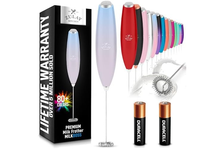 Zulay Kitchen Milk Frother Handheld Electric Whisk with AA Duracell Batteries – Durable Drink Mixer for Coffee, Lattes, Cappuccinos & More - Cloud