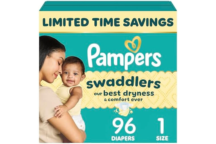 Pampers Swaddlers Diapers, Size 1 (8-14 lbs), 96 Count, Absorbent, Keeps Baby Dry and Comfortable, Skin Safe Disposable Baby Diaper (Packaging May Vary)