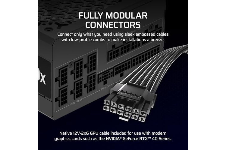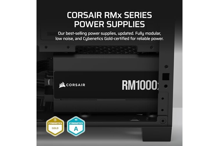 CORSAIR RM1000x Fully Modular Low-Noise ATX Power Supply – ATX 3.1 Compliant – PCIe 5.1 Support – Cybenetics Gold Efficiency – Native 12V-2x6 Connector – Black