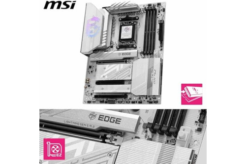 QUADRUPLE M.2 CONNECTORS - Includes 2 x M.2 Gen5 x4 128Gbps slots, 1 x M.2 Gen4 x4 64Gbps slot and 1 x M.2 Gen4 x2 32Gbps slot with Shield Frozr to prevent thermal throttling; Features EZ M.2 Shield Frozr II with EZ M.2 Clip II for EZ DIY experience