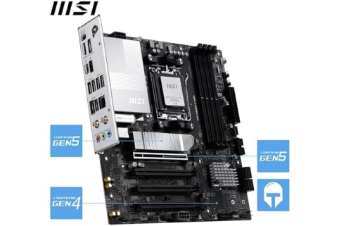 TRIPLE M.2 CONNECTORS - Storage options include 1 x M.2 Gen5 x4 128Gbps slot with EZ M.2 Shield Frozr II to prevent thermal throttling, 1 x M.2 Gen4 x4 64Gbps slot and 1 x M.2 Gen4 x2 32Gbps slot