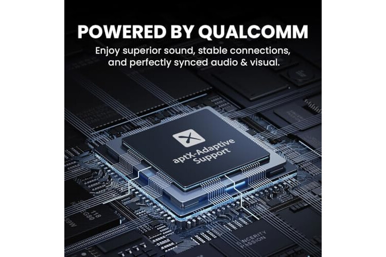 【No Audio Delay】The Qualcomm QCC chip and aptX Adaptive keep audio perfectly in sync with the screen — no lip sync issues or delay.