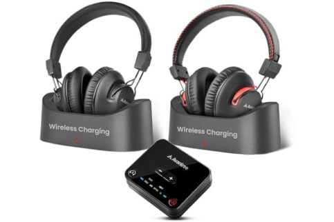 【Watch Together Freely】Watch TV with your partner using two wireless headphones — each person can set their own volume without disturbing anyone nearby.