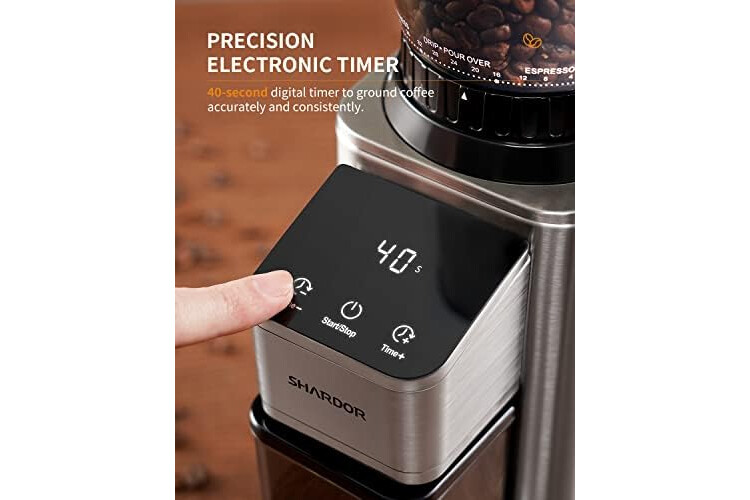 SHARDOR Professional Conical Burr Coffee Grinder, Coffee Bean Grinder with 48 Grind Settings for Espresso, Drip & French Press, Upgraded Anti-Static Technology, Precision Timer, Stainless Steel