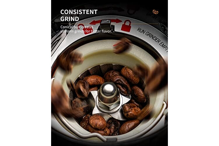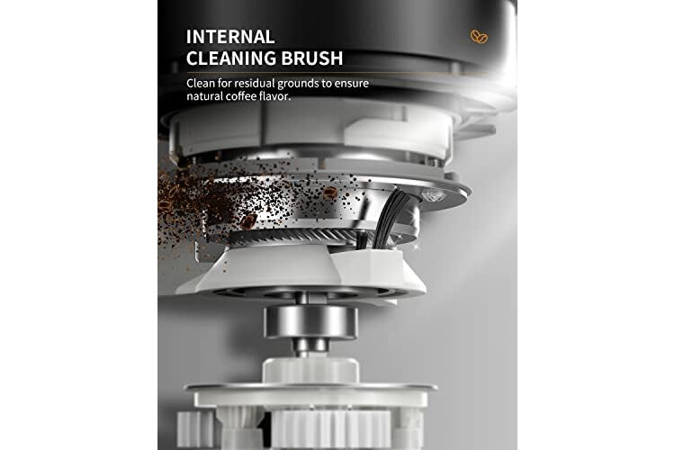 [ UPGRADE ANTI-STATIC CONICAL BURR COFFEE GRINDER ] - The anti-static technology prevents the grounds from sticking to the coffee chamber and creating a mess. It allows a smooth flow of coffee grounds for an improved experience.