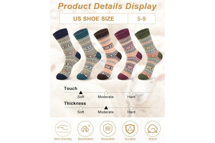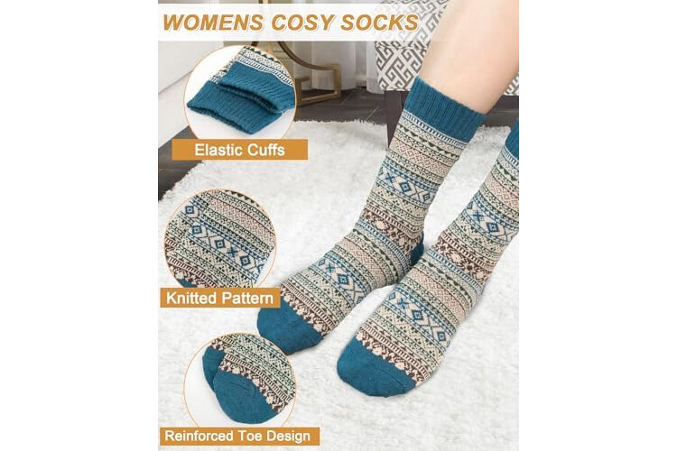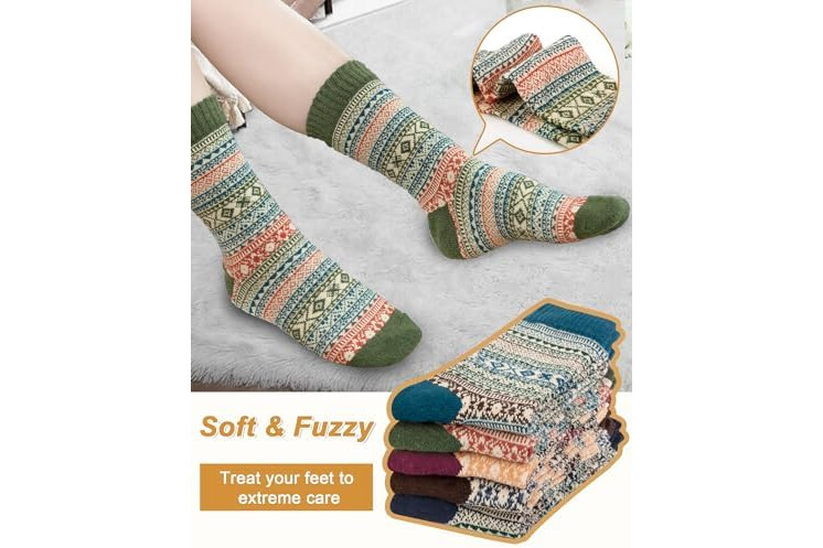 Senker Fashion Wool Socks for Women, Stocking Stuffers Christmas Gifts for Women Mom Her Boot Warm Crew Sock for Winter