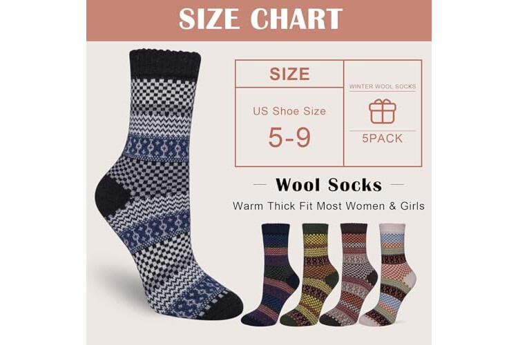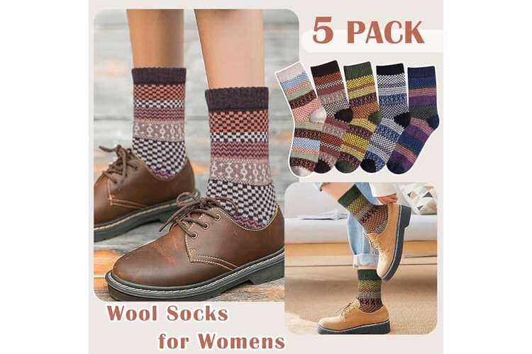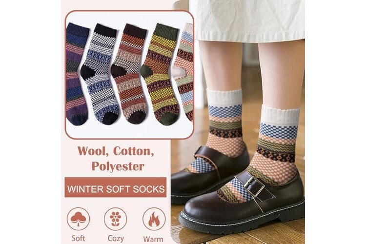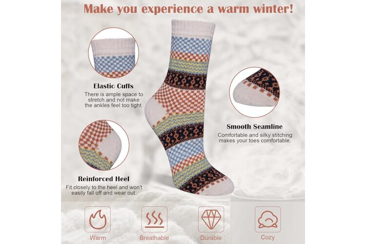 Senker Fashion Wool Socks for Women, Stocking Stuffers Christmas Gifts for Women Mom Her Boot Warm Crew Sock for Winter