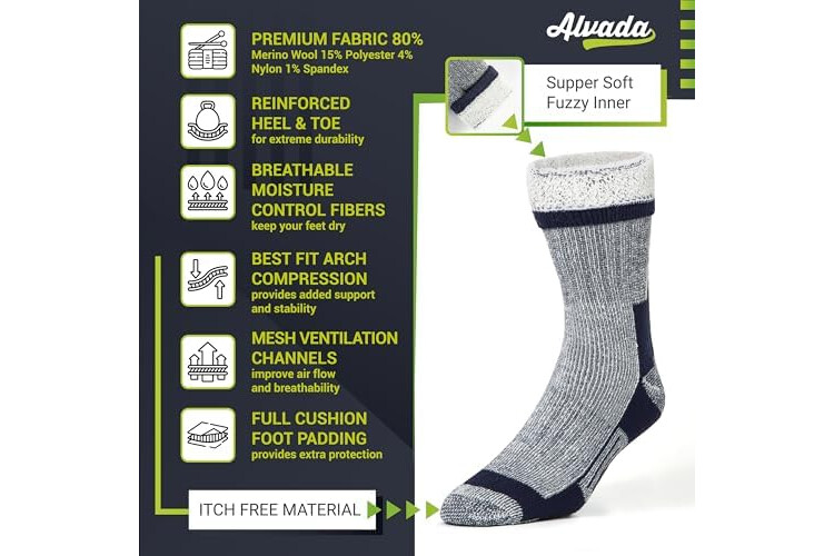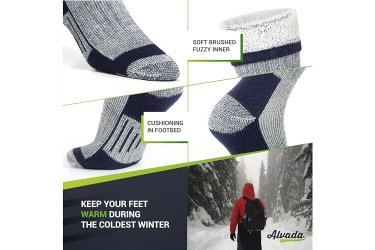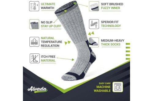 Alvada Merino Wool Hiking Socks Thermal Warm Crew Winter Boot Sock For Men & Women 3 Pairs