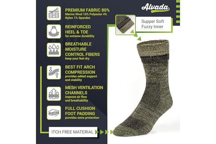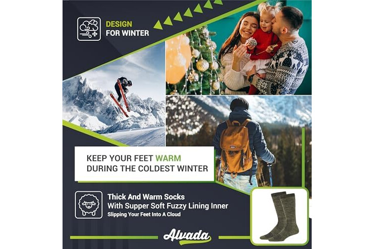 Alvada Merino Wool Hiking Socks Thermal Warm Crew Winter Boot Sock For Men & Women 3 Pairs