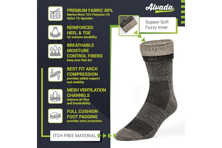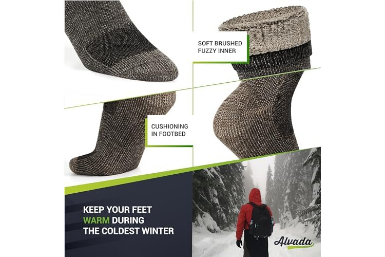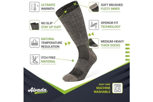 Alvada Merino Wool Hiking Socks Thermal Warm Crew Winter Boot Sock For Men & Women 3 Pairs