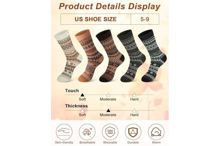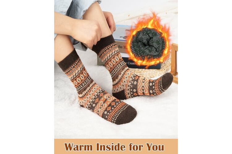 Senker Fashion Wool Socks for Women, Stocking Stuffers Christmas Gifts for Women Mom Her Boot Warm Crew Sock for Winter