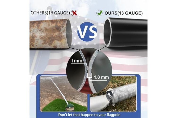 2X Harder 6061-T6 Aluminum: Precision T6 heat-treating creates a rigid internal structure with Mg₂Si particles, achieving 45,000 PSI strength and 95 HBW hardness - twice that of common flag poles. This superior rigidity prevents bending in high winds, protecting your flag from damage and ensuring a straight, proud display.
