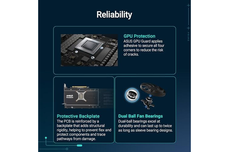 ASUS Prime Radeon™ RX 9070 XT OC Edition Graphics Card (PCIe 5.0, HDMI/DP 2.1, 2.5-Slot Design, axial-tech Fans, Dual Ball Fan Bearings, Dual BIOS, ASUS GPU Guard)