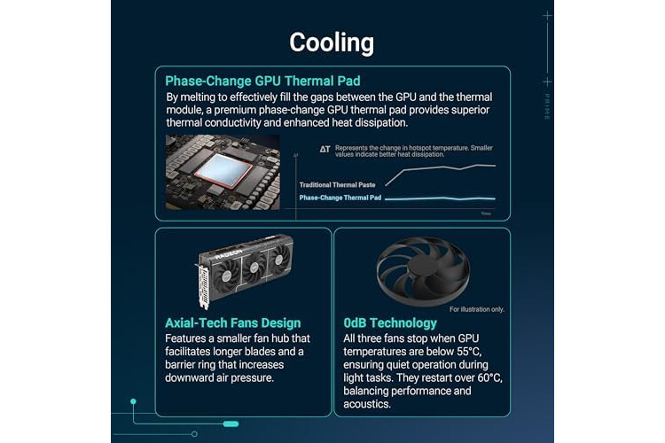• Phase-change GPU thermal pad helps ensure optimal heat transfer, lowering GPU temperatures for enhanced performance and reliability