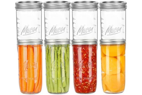 24 oz Wide Mouth Mason Jars - Canning Jars with Metal Airtight Lids and Bands, 24 ounce Mason Glass Jars for Fermenting, Pickling, Meal Prep, Overnight Oats, Jam, Jelly, DIY Projects (8 pack)