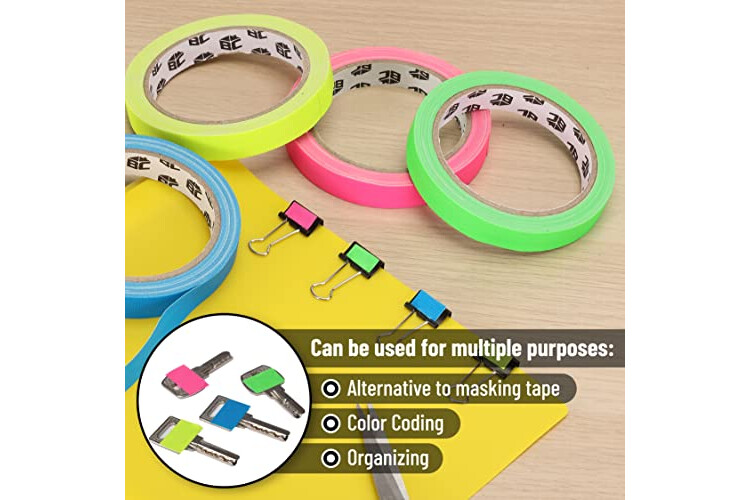 Package includes 4 gaffers tapes with rubber adhesive in 4 neon colors.