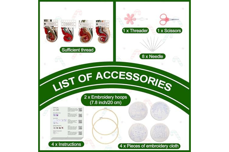 BEGINNER-FRIENDLY AND FUN: Whether you're new to embroidery or have experience,our kit comes with easy-to-follow instructions and all the materials and accessories you need.Enjoy the process of crafting a handmade Christmas keepsake while developing a new hobby