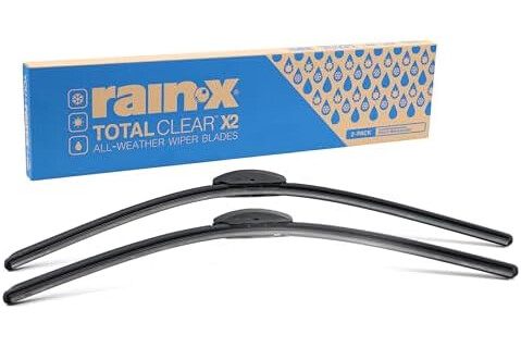 Rain-X 810337 Total Clear Beam Wiper Blades 20" & 20" Windshield Wipers for All-Weather Performance, Rubber Squeegee for Smooth Clean Wipe & Quiet Operation - 2 Pack Value
