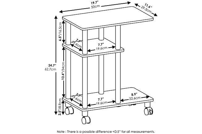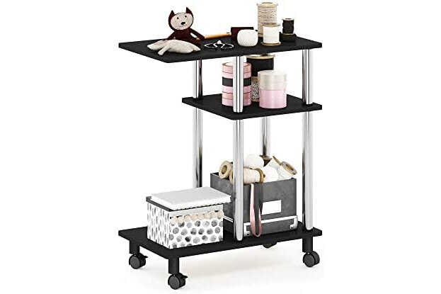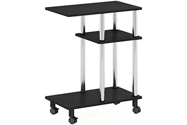 Furinno Turn-N-Tube C Shaped Side Table with Casters, Americano/Stainless Steel