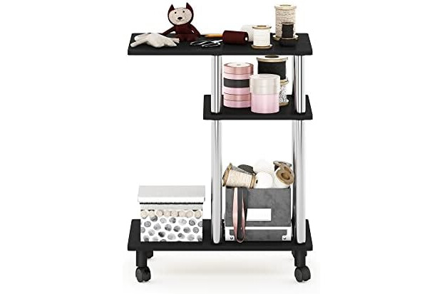 MODERN C-SHAPE MOBILE DESIGN: This side table features a slim three-tier C-shaped silhouette with rolling casters that suits living rooms, bedrooms, home offices, and dorms, making the C-table easy to move and space-friendly
