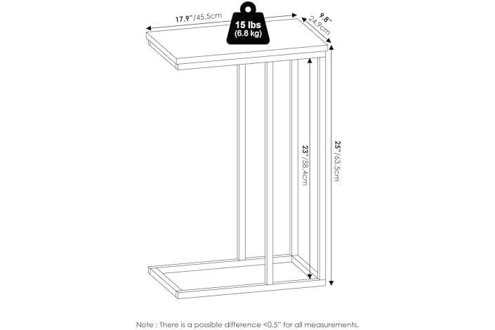 WEIGHT CAPACITY: The tabletop of this toolless c-shape end tables/ nightstands set supports up to 15 lbs; Total support 15 lbs