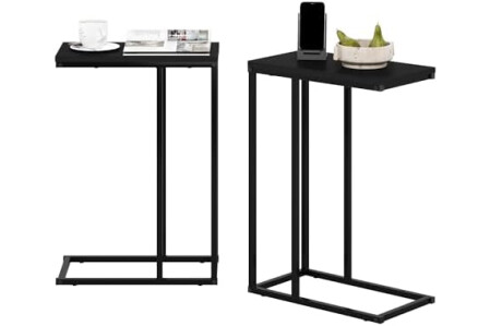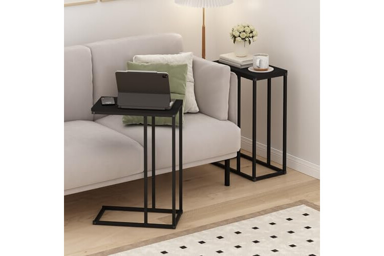 INDUSTRIAL METAL-FRAME DESIGN: This set of 2 toolless metal frame c-shape side tables features a sleek square top with a slim balck tone c-shape metal frame that suits living rooms, bedrooms, offices, and apartments, making the end tables both versatile and space-friendly