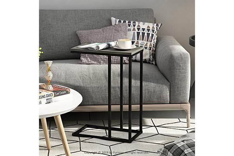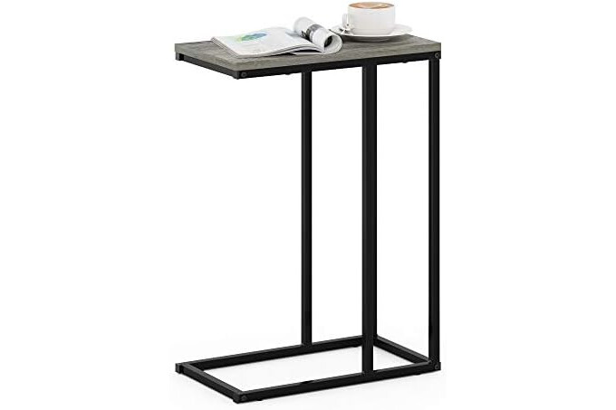 Furinno Camnus Modern Living C Shaped Sofa Side Table, 9.8 in x 17.9 in x 25 in, French Oak Grey