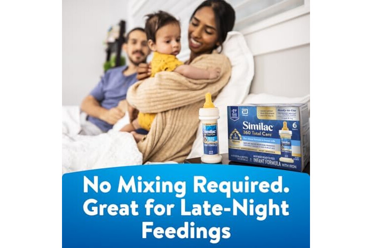 Similac 360 Total Care Infant Formula, Has 5 HMO Prebiotics, Our Closest Prebiotic Blend to Breast Milk, Non-GMO, Baby Formula, Ready to Feed, 2-fl-oz Bottle, Pack of 48
