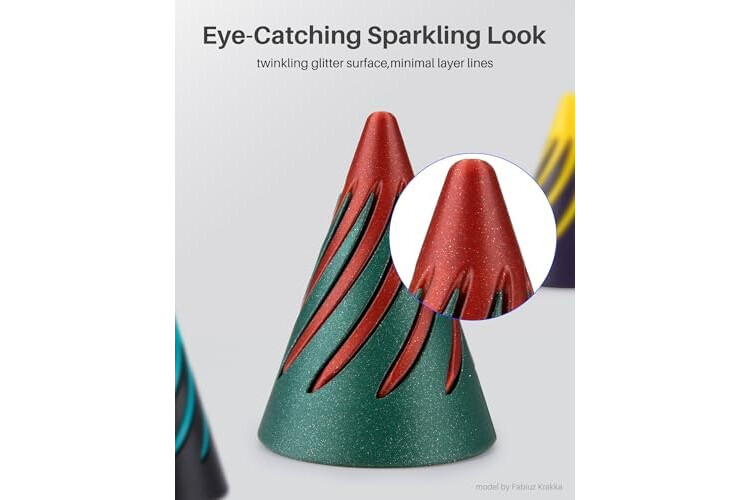 HIGH QUALITY & EASY TO USE – Made from premium PLA, this filament is easy to print with and ensures reliable performance on standard settings. Its shiny, glitter-filled finish makes your prints stand out with minimal effort