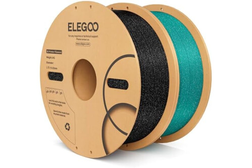 ELEGOO PLA Filament 1.75mm 2KG Sparkle Black & Turquoise, Glitter Twinkling 3D Printer Filament Dimensional Accuracy +/- 0.02mm, 2pcs 1kg Spool(2.2lbs) Fits for Most FDM 3D Printers
