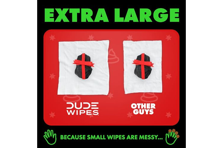 EXTRA LARGE FLUSHABLE WIPES: When it comes to flushable wipes for taking on the day outside, size matters; Our wipes are WAY larger than the other guys because nobody wants a little wipe after a big burrito