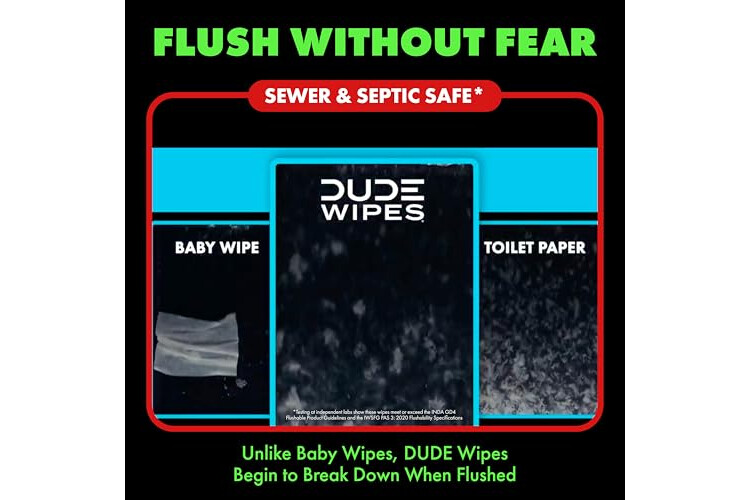 FLUSHABLE & PLANT SOURCED FIBERS: Our wipes are made with plastic free & plant sourced fibers. Unlike baby wipes, DUDE Wipes are sewer and septic-safe. Say goodbye to toilet paper and say hello to DUDE flushable wet wipes for the whole family