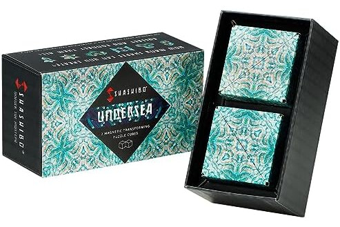 SHASHIBO Shape Shifting Box - Award-Winning, Patented Fidget Cube w/ 36 Rare Earth Magnets - Transforms Into Over 70 Shapes, Gift Box, Download Fun in Motion Toys Mobile App (Undersea, 2 Pack)