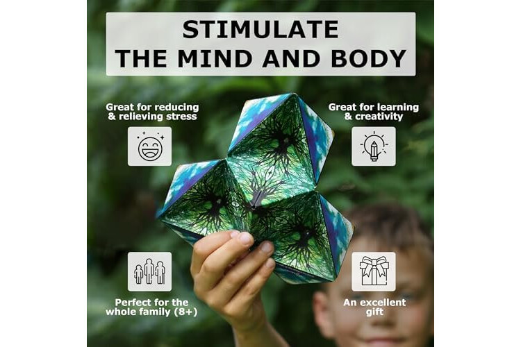 Unlike other puzzle box toys that turn out disappointing & dull, the patented, award-winning shashibo sensory box features 36 rare earth magnets for an innovative design that transforms into over 70 shapes. Fits comfortably in the hand for hours of mind-challenging fun, stimulate the senses with unlimited creative possibility! Can you master the shape-shifting box?