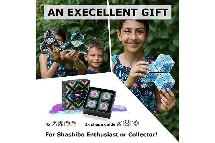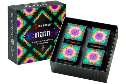 SHASHIBO Shape Shifting Box - Award-Winning, Patented Fidget Cube w/ 36 Rare Earth Magnets - Transforms Into Over 70 Shapes, Gift Box, Download Fun in Motion Toys Mobile App (Moon, 4 Pack)
