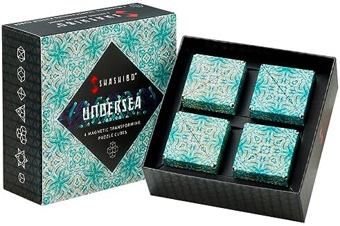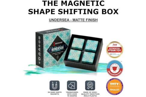 SHASHIBO Shape Shifting Box - Award-Winning, Patented Fidget Cube w/ 36 Rare Earth Magnets - Transforms Into Over 70 Shapes, Gift Box, Download Fun in Motion Toys Mobile App (Undersea, 4 Pack)