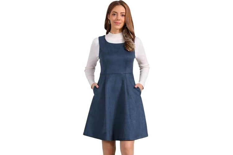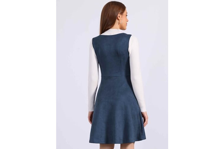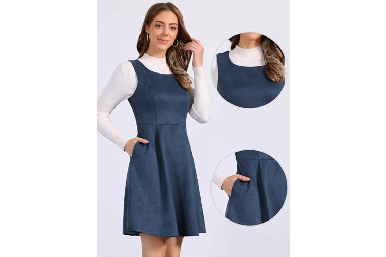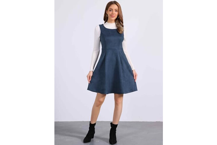 Allegra K Pinafore Dress for Women's Sleeveless Casual Vintage Faux Suede t Shirt Dresses