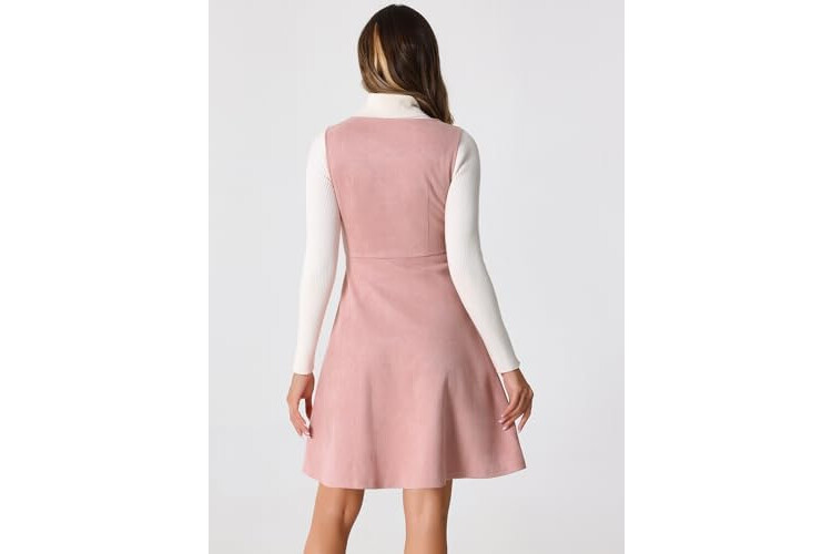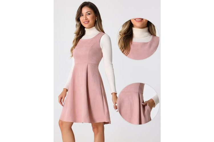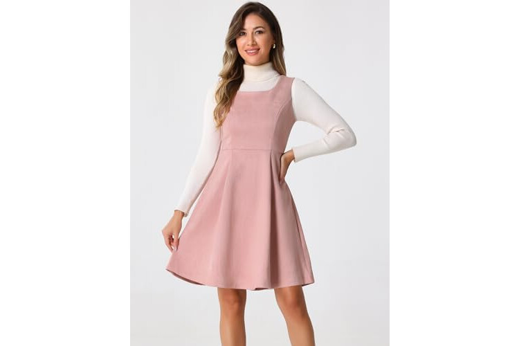 Allegra K Pinafore Dress for Women's Sleeveless Casual Vintage Faux Suede t Shirt Dresses