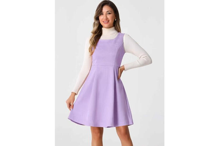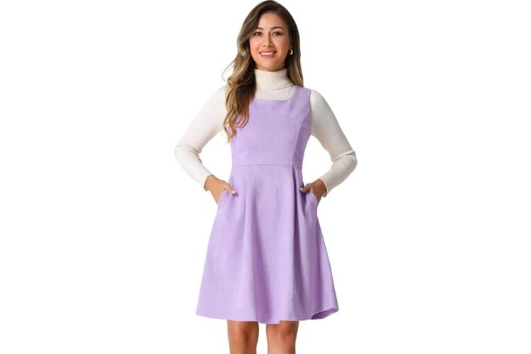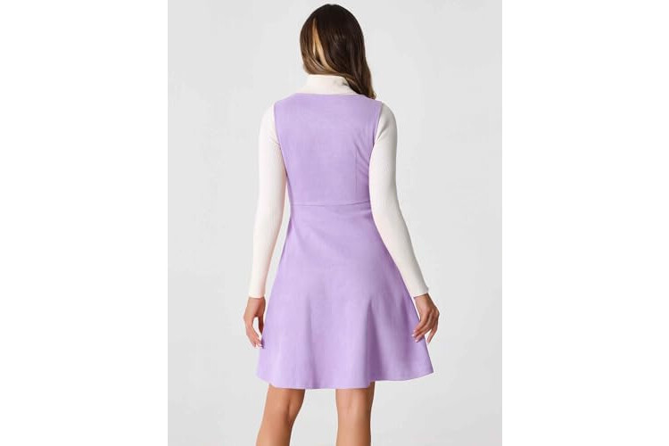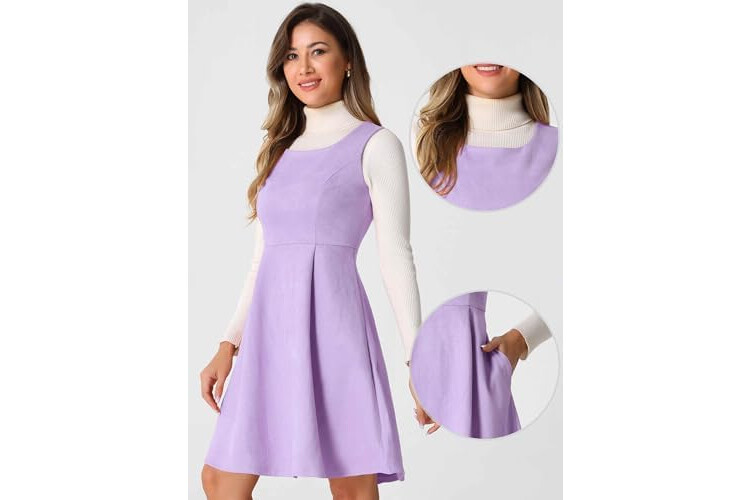 Allegra K Pinafore Dress for Women's Sleeveless Casual Vintage Faux Suede t Shirt Dresses