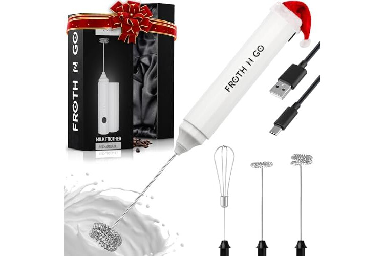 Zulay Froth N Go Milk Frother – Rechargeable 3-in-1 Handheld Frother Wand with Travel Case & USB-C Charger – Single, Double & Egg Whisk for Latte, Cappuccino, Matcha, Protein Shakes – White