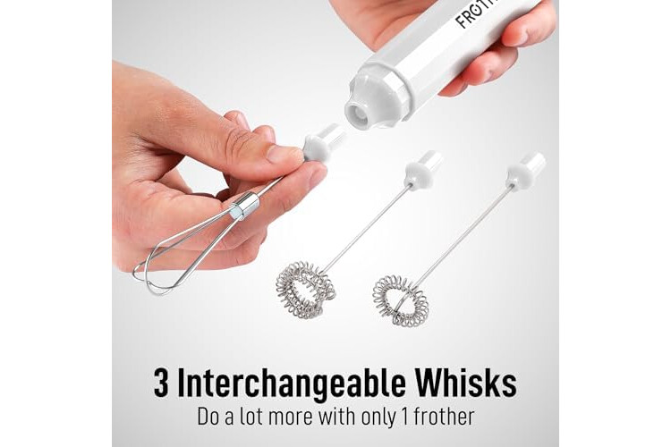 3-in-1 Whisk Set + Travel Case: Includes single whisk, double whisk, and egg beater attachments for frothing, whipping, and mixing. Comes with a durable travel case to store all parts organized on the go.