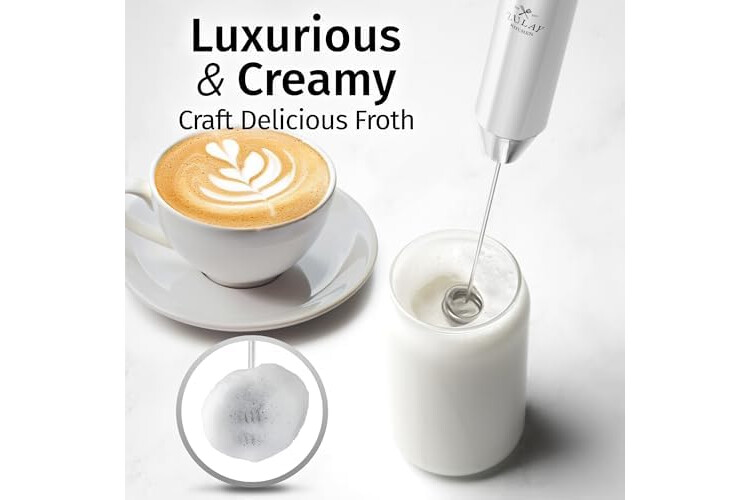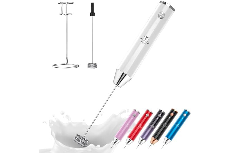 • RECHARGEABLE FROTHER: Zulay milk frother wand includes a 2000 mAh rechargeable battery and USB-C cable for fast, efficient charging. This rechargeable milk frother handheld design removes the need for frequent battery changes, making it highly convenient.
