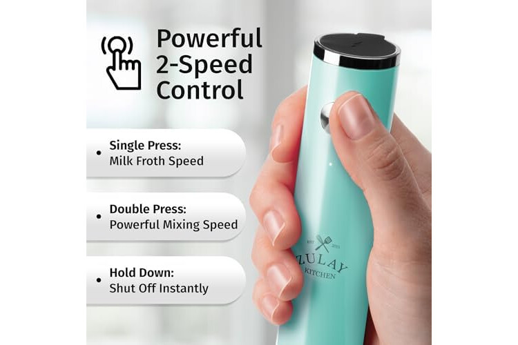 POWERFUL 2-SPEED MOTOR: Zulay electric whisk frother has a strong motor that quickly creates rich foam. With normal and turbo modes, you can adjust frothing for any drink making it the perfect electric frother for coffee or frother for protein powder.